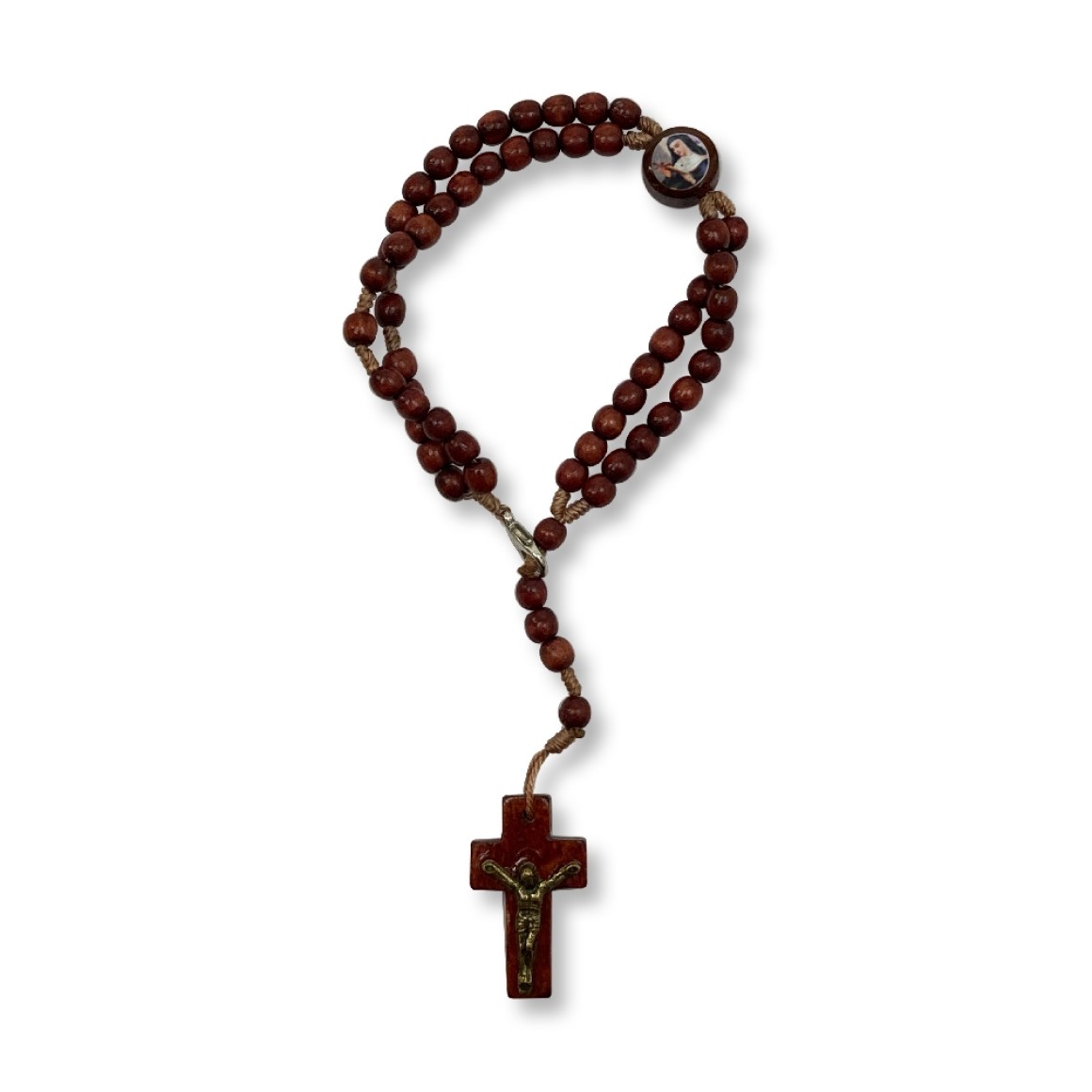 PU1541160P12 - Pulseira Terço Santa Rita de Cássia Madeira - 22x1,8cm