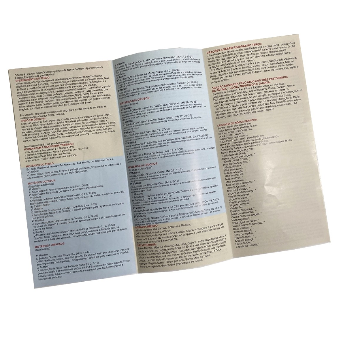 * Folheto Mistérios do Rosário - 21x10cm.