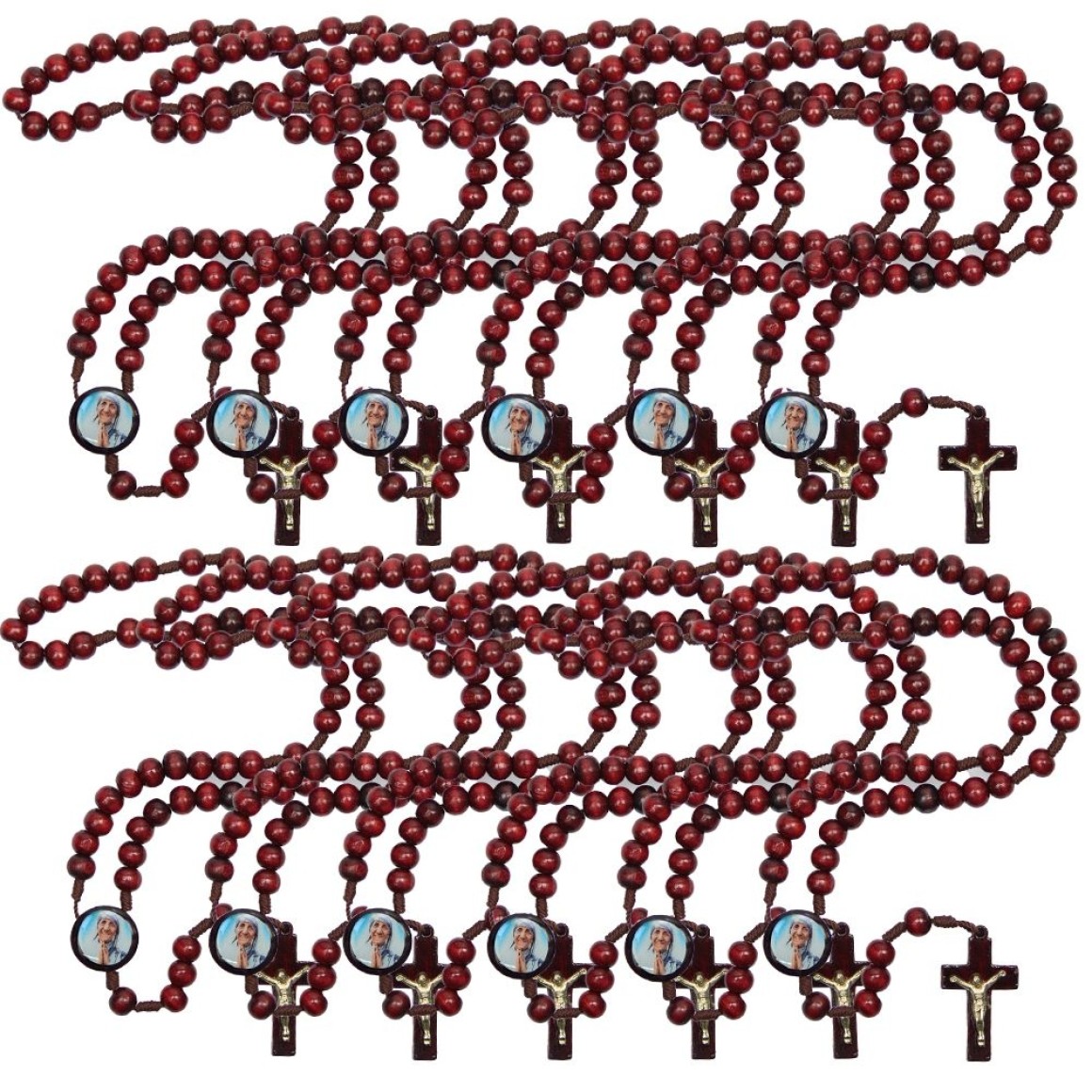 2. TE940341P12 - Terço Madre Teresa de Calcutá Madeira c/ 12un. - 37cm