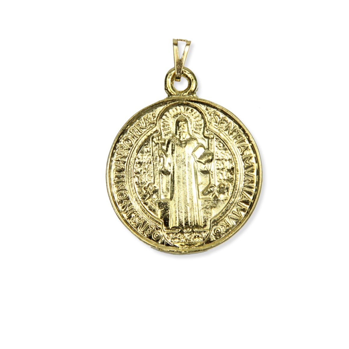 *Na frente da medalha são apresentados uma cruz e entre seus braços estão gravadas as letras C S P B, cujo significado é, do latim: Cruz Sancti Patris Benedicti – "Cruz do Santo Pai Bento".